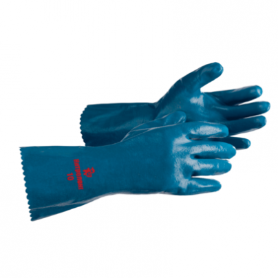 Удлиненные нитрильные перчтки (общая длина 35 см) с удобной широкой манжетой, обеспечивающие высокую тактильность. Отлично выдерживают контакт с минеральными маслами, бензином, нефтью. Хорошая стойкость к воздействиям кислот, щелочей, солей.